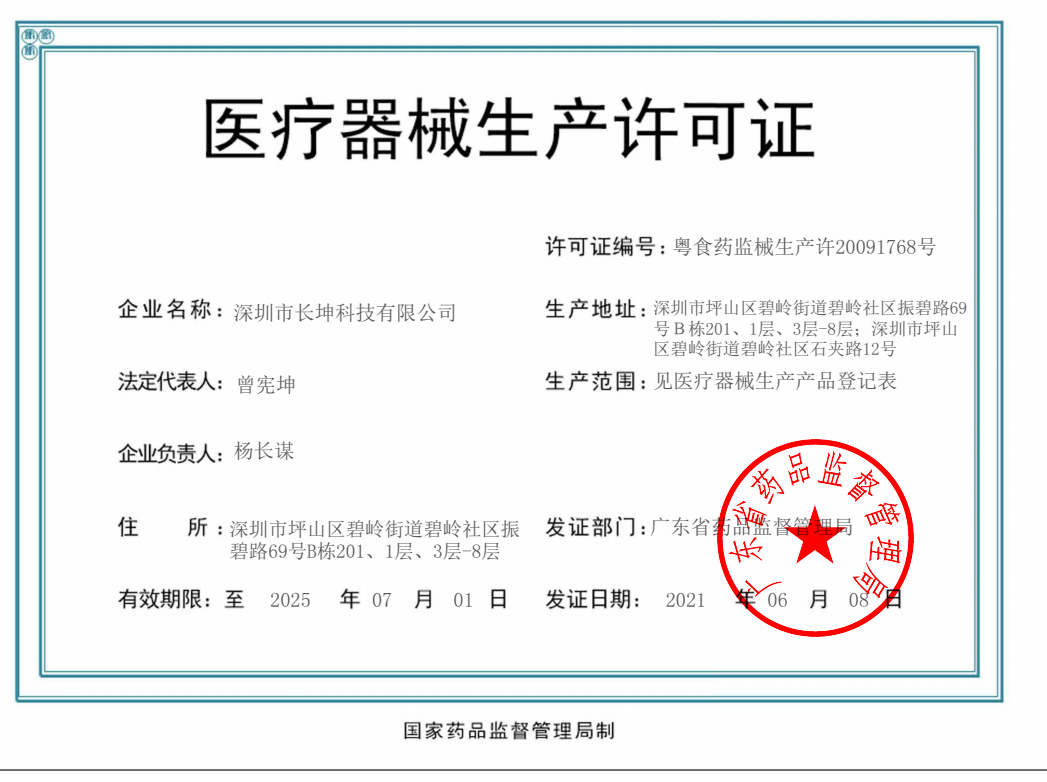 歡迎來到深圳市長(zhǎng)坤科技有限公司官網(wǎng)! 粵深食藥監(jiān)械經(jīng)營備20151166號(hào) 粵食藥監(jiān)械生產(chǎn)許20091768號(hào)